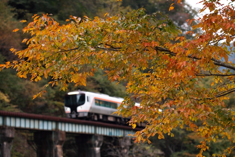 ![]() 深まりゆく秋の飛騨路(3) / 高山本線 渚→飛騨小坂 / 2025年10月31日撮影 天気予報は午後から雨。雨雲レーダーを見ると迫り来る雨雲。 逃げるように北へ北へと移動しこちらへ。なんとか雨がやってくるまでに撮影できました。 |